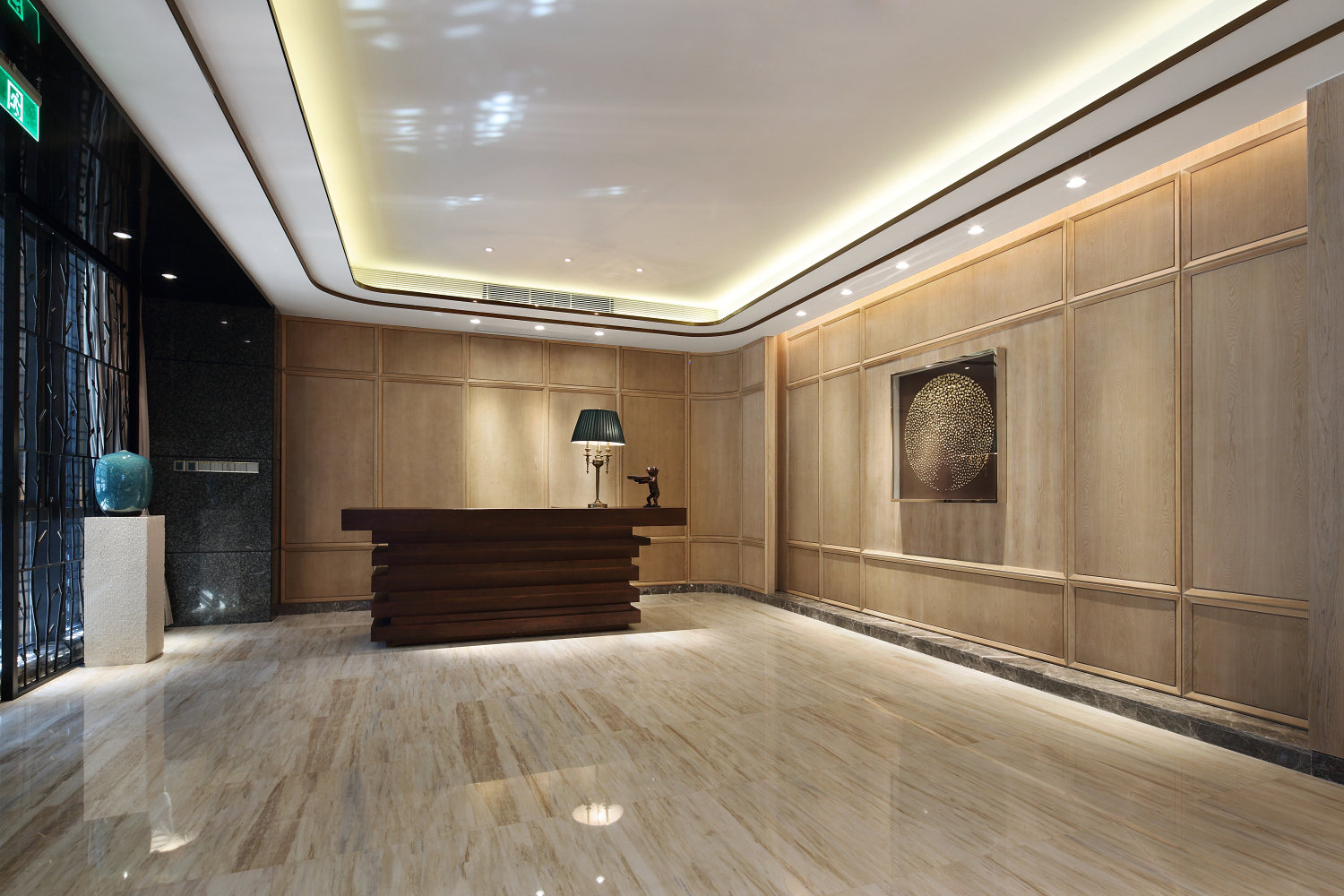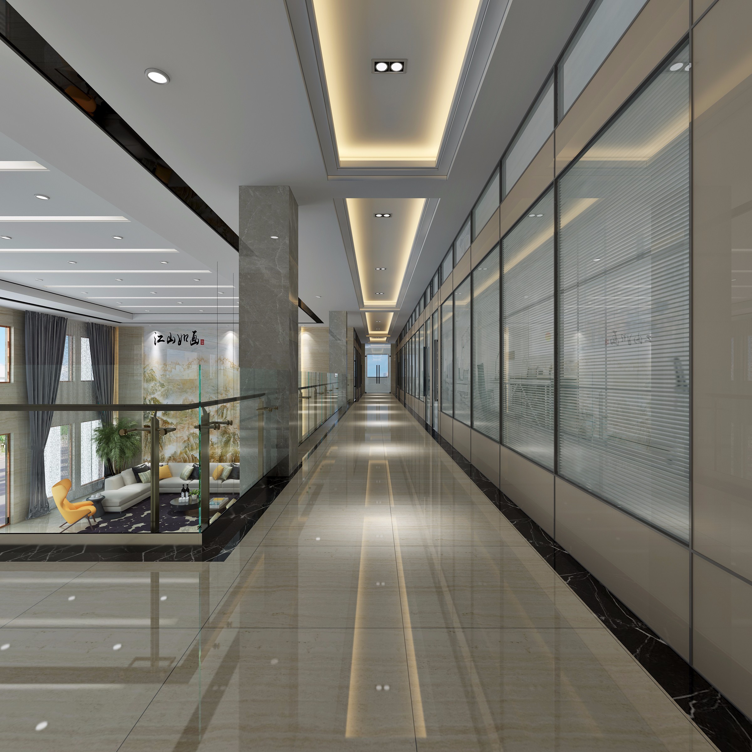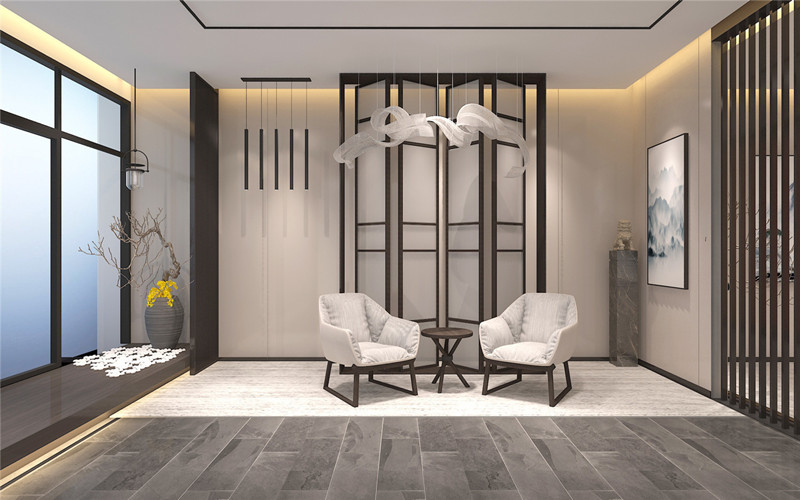 最后,在燈光的設(shè)計(jì)方面,設(shè)計(jì)師采用了柔和的燈光效果,使得整條走廊顯得更加溫馨舒適且富有層次感。同時(shí),一些燈具還運(yùn)用了傳統(tǒng)的琉璃材質(zhì),增添了一份華貴和奢華的氣息 綜上所述,新中式風(fēng)格的高端商務(wù)會(huì)所走廊設(shè)計(jì)通過運(yùn)用傳統(tǒng)的中國(guó)元素如獅像雕塑、大理石地板和中國(guó)紅等來(lái)打造出一個(gè)具有濃郁中國(guó)文化特色的場(chǎng)所。